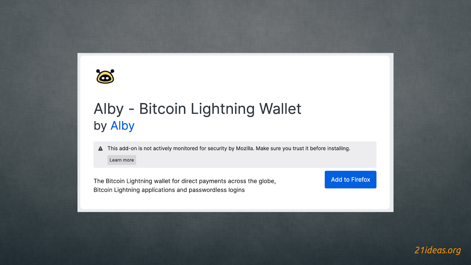 Как я уже сказал, основным продуктом Alby является одноименное браузерное расширение. Благодаря этому сама установка аналогична установке любого другого расширения для браузеров Crome или Firefox.