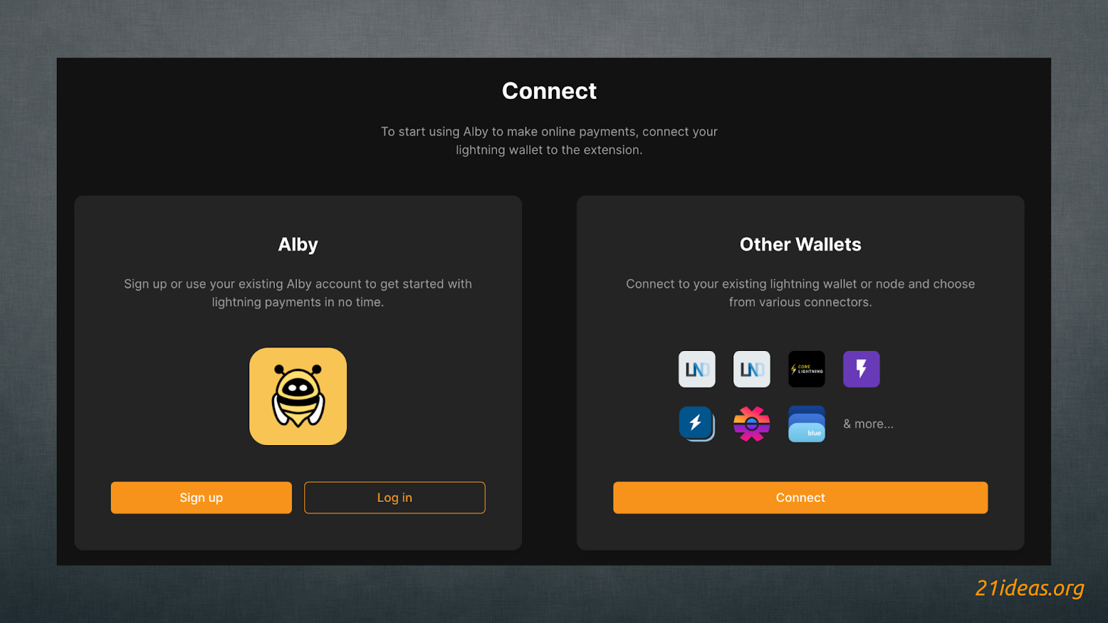 Более опытным биткоинерам и пользователям сети Молния будут интересны другие варианты подключения аккаунта Alby, предоставляющие лучшую гибкость использования и возможность самостоятельно хранить свои ЛН-сатошики. Здесь вы можете подключить сервис к уже используемому вами кошельку или собственному лайтнинг-узлу.