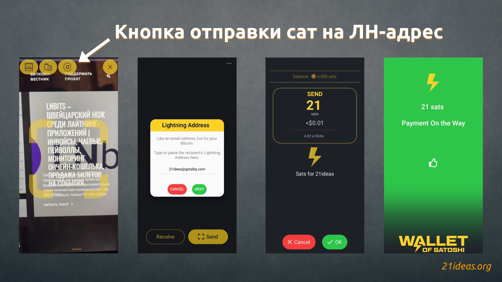 Лайтнинг-адреса также поддерживаются множеством кошельков, например, Wallet of Satoshi.
