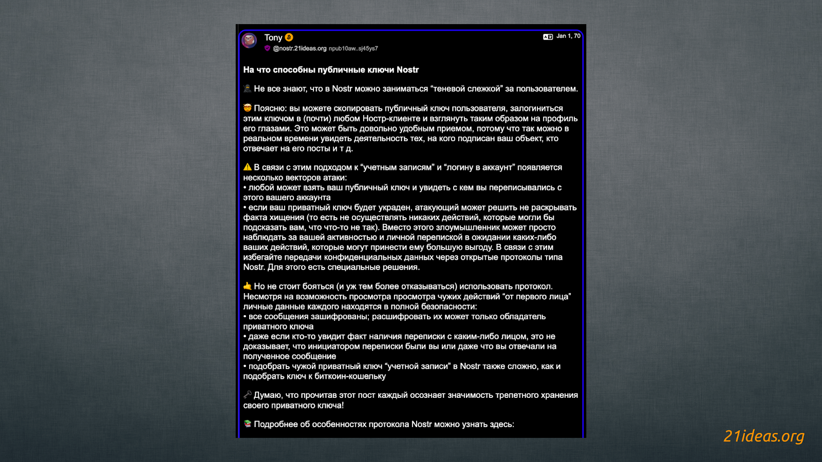 Отличным дополнением к этому материалу станет подготовленный нами исчерпывающий ресурс по протоколу Nostr: https://nostr.21ideas.org/