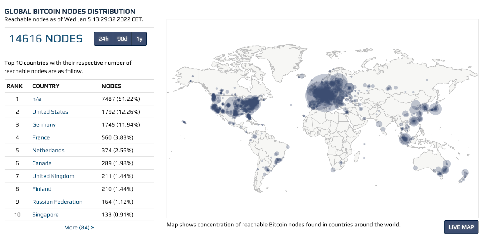 Для того чтобы уничтожить Биткоин, вам придется добраться до каждого узла в каждой стране, в каждом доме и уничтожить каждый из них. Учитывая их количество, это просто невозможно. Вот карта, представленная на сайте bitnodes.io, которая показывает распределение узлов по всему миру. Это также одна из самых консервативных оценок количества активных узлов на данный момент.