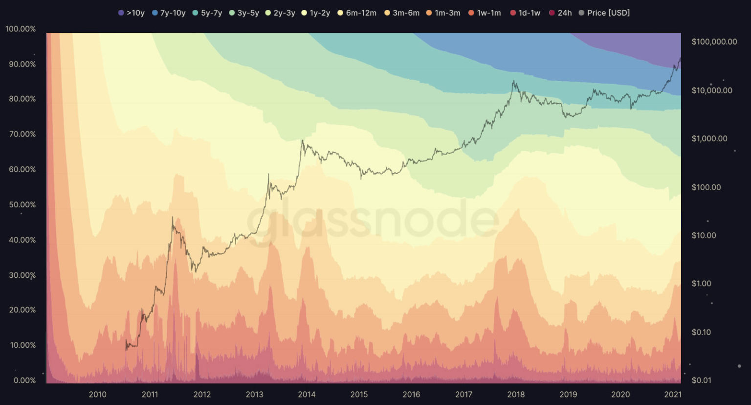 Представьте себе график HODL-волн для межзвездного блокчейна с 500,000-летней историей. [Источник].