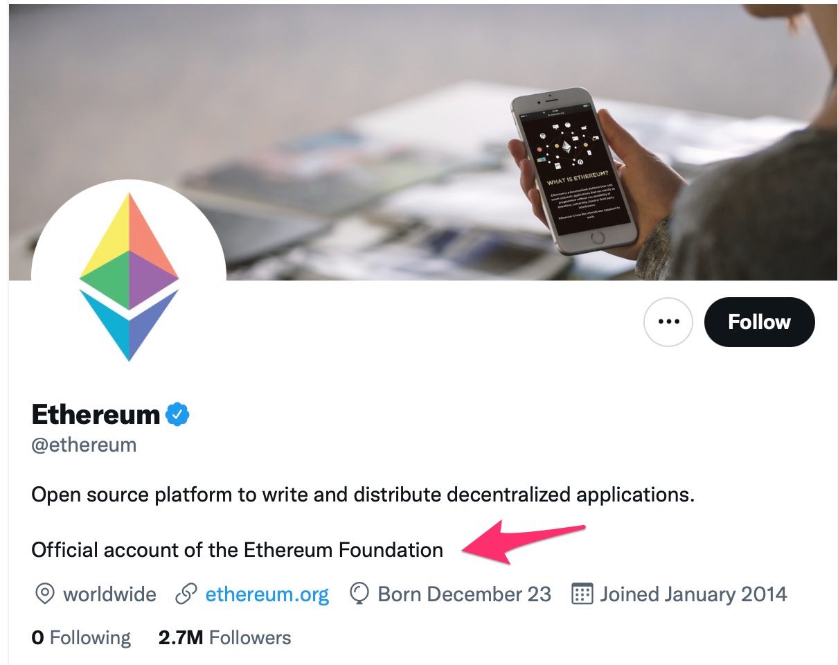 Официальный аккаунт Ethereum Foundation в твиттере
