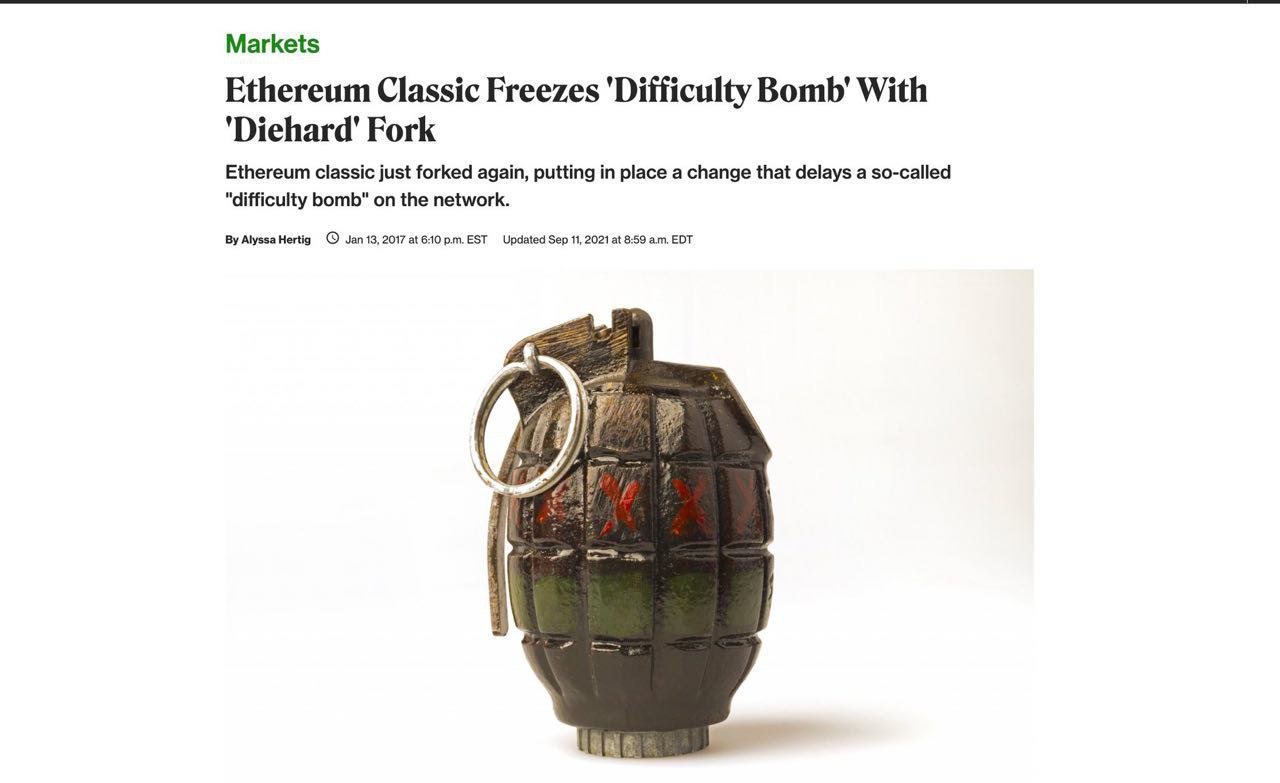 Etherreum Classic вынужден был сделать очередной хард-форк, чтобы обезвредить бомбу сложности Ethereum