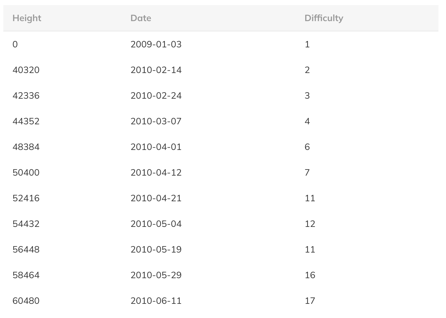 К сожалению, все немного сложнее, поскольку сложность майнинга начала увеличиваться с блока #40320 14 февраля 2010 года, и Сатоши продолжали добывать по крайней мере до 3 мая 2010 года. Сложность еще больше возрастает, если учесть, что добыча Сатоши с максимальной потенциальной хэш-мощностью привела бы к переносу первого целевого изменения сложности на ~2.5 месяца вперед.