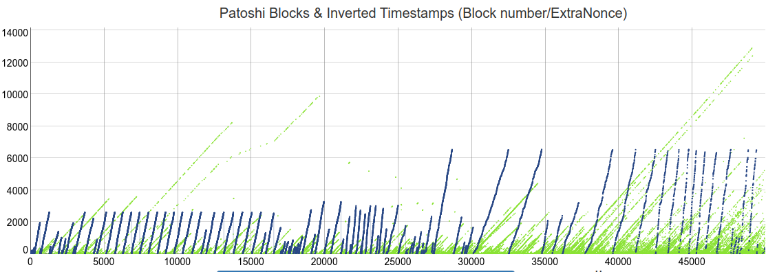 При построении графика эти ExtraNonce позволили визуализировать узор Патоши, для которого мы можем наблюдать непрерывные склоны ExtraNonce.