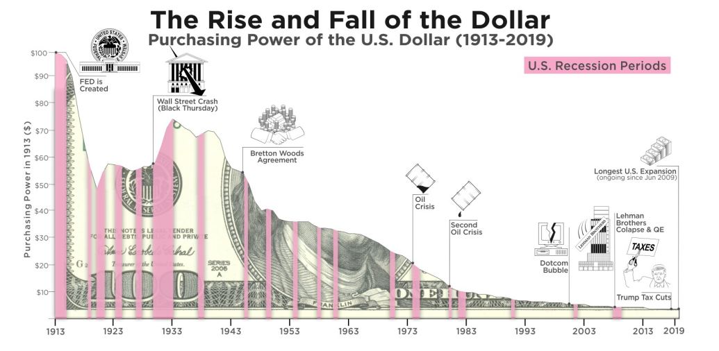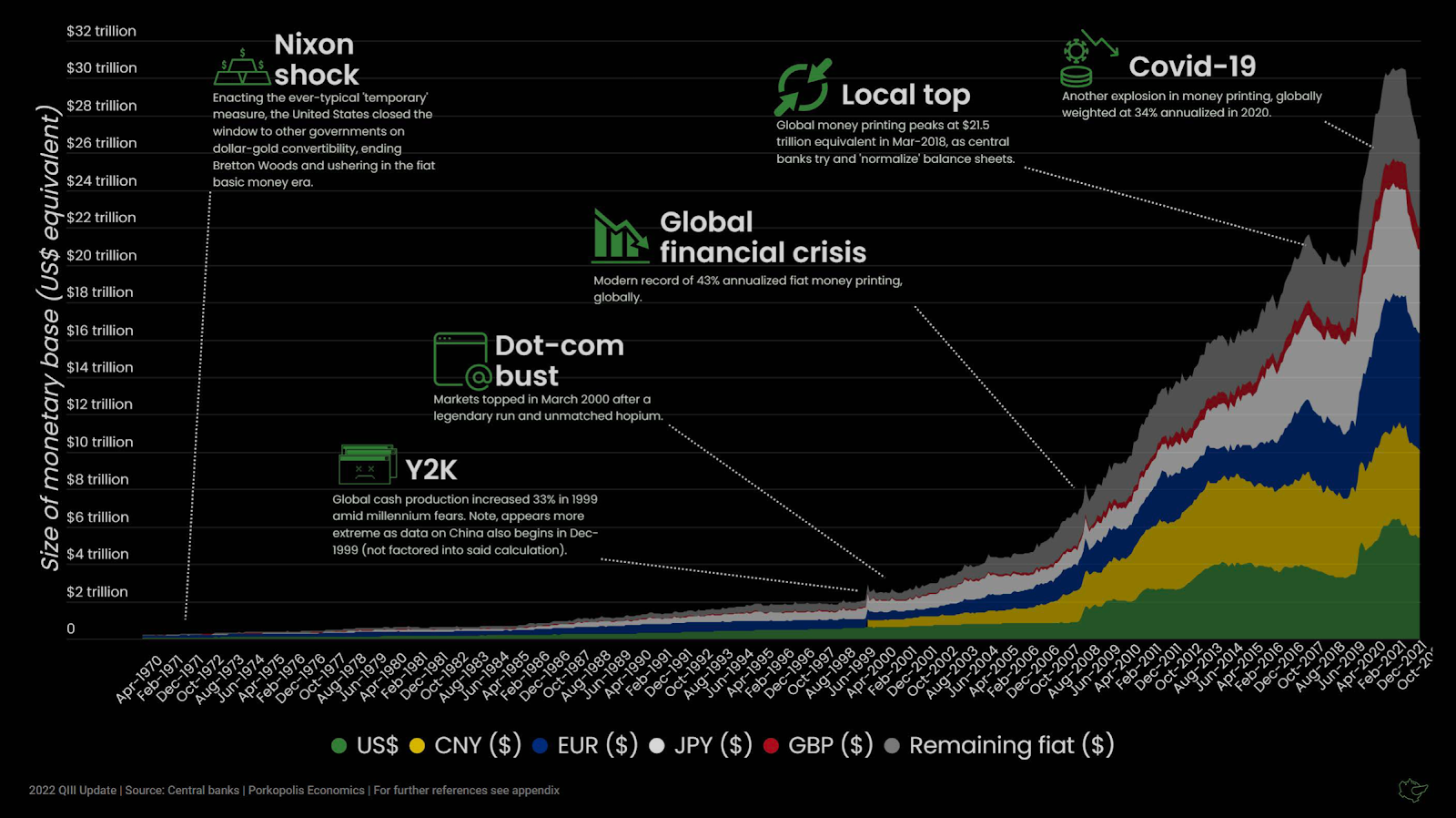 В западном мире мы игнорируем фиатную линзу, сквозь которую мы смотрим на мир. В основном мы имеем дело со “стабильными” валютами, то есть с валютами, покупательная способность которых постепенно снижается. Но не обманывайте себя: все фиатные валюты подвержены инфляции. Если деньги можно напечатать, они будут напечатаны. Искушение попросту слишком велико.
