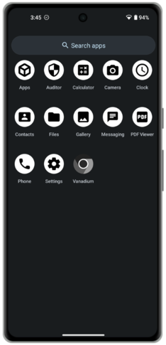 Теперь, когда все готово, вы можете заметить, что после установки GrapheneOS выглядит “голой”. По умолчанию у вас будут установлены следующие приложения: