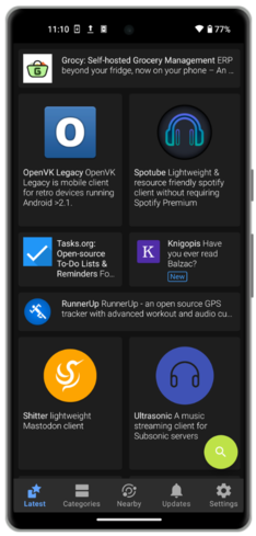 F-Droid - это устанавливаемый каталог FOSS-приложений для Android. Клиент позволяет легко находить, устанавливать и обновлять приложения на вашем устройстве. Стоит отметить, что обновления через F-Droid иногда происходят медленнее, чем через другие магазины приложений. Это в основном зависит от того, находится ли приложение в основном репозитории F-Droid или в пользовательском.