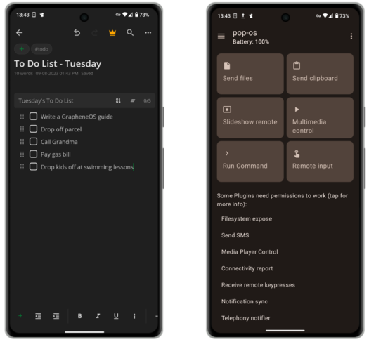 - KDE Connect - все ваши устройства могут легко общаться друг с другом при подключении к домашней сети. Легко отправляйте файлы, фотографии, данные из буфера обмена между всеми вашими устройствами (даже на iOS!). KDE Connect можно загрузить из F-Droid.
