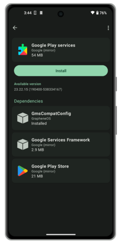 Если вы обнаружили, что просто не можете жить без push-уведомлений для вашего любимого приложения или что определенное “очень нужное” приложение бесполезно без сервисов Google Play, GrapheneOS позволит вам установить эти службы в полностью изолированной среде. После установки эти сервисы не требуют учетной записи Google для работы, а разрешения каждого из них можно жестко контролировать.