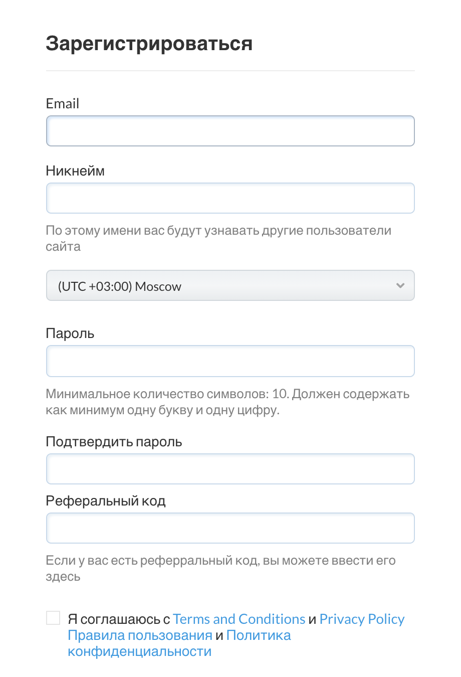Как видите, при регистрации на HODL HODL, количество персональной информации, обязательной для предоставления равно нулю. Требуется ввести лишь адрес электронной почты, никнейм или псевдоним и сгенерировать пароль.