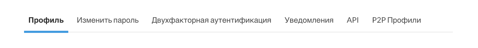 Здесь вы можете по желанию предоставить дополнительную информацию о себе, сменить пароль, настроить двухфакторную аутентификацию (что я настоятельно рекомендую сделать, ведь это добавит дополнительный слой безопасности, а ее, как известно, много не бывает), настроить уведомления, получаемые как с помощью телеграм-бота, так и через email, получить доступ к API ключам и добавить p2p профили с других подобных площадок, что улучшит ваш рейтинг в случае если вы обладаете положительной историей торговли на Localbitcoins или Paxful.