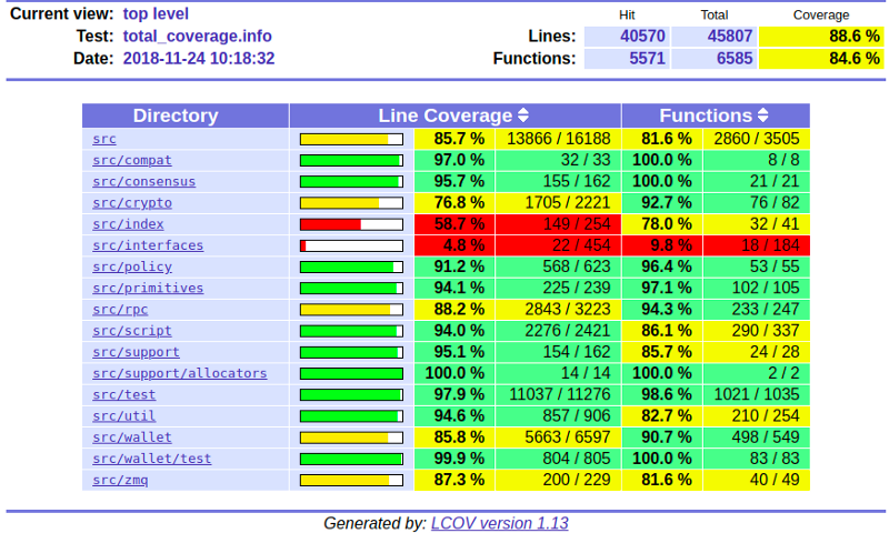 В Bitcoin Core содержится и немало тестового кода. Существует набор интеграционных тестов, который проверяет каждый пул-реквест, и расширенный набор тестов, который каждую ночь проверяет основную ветку.