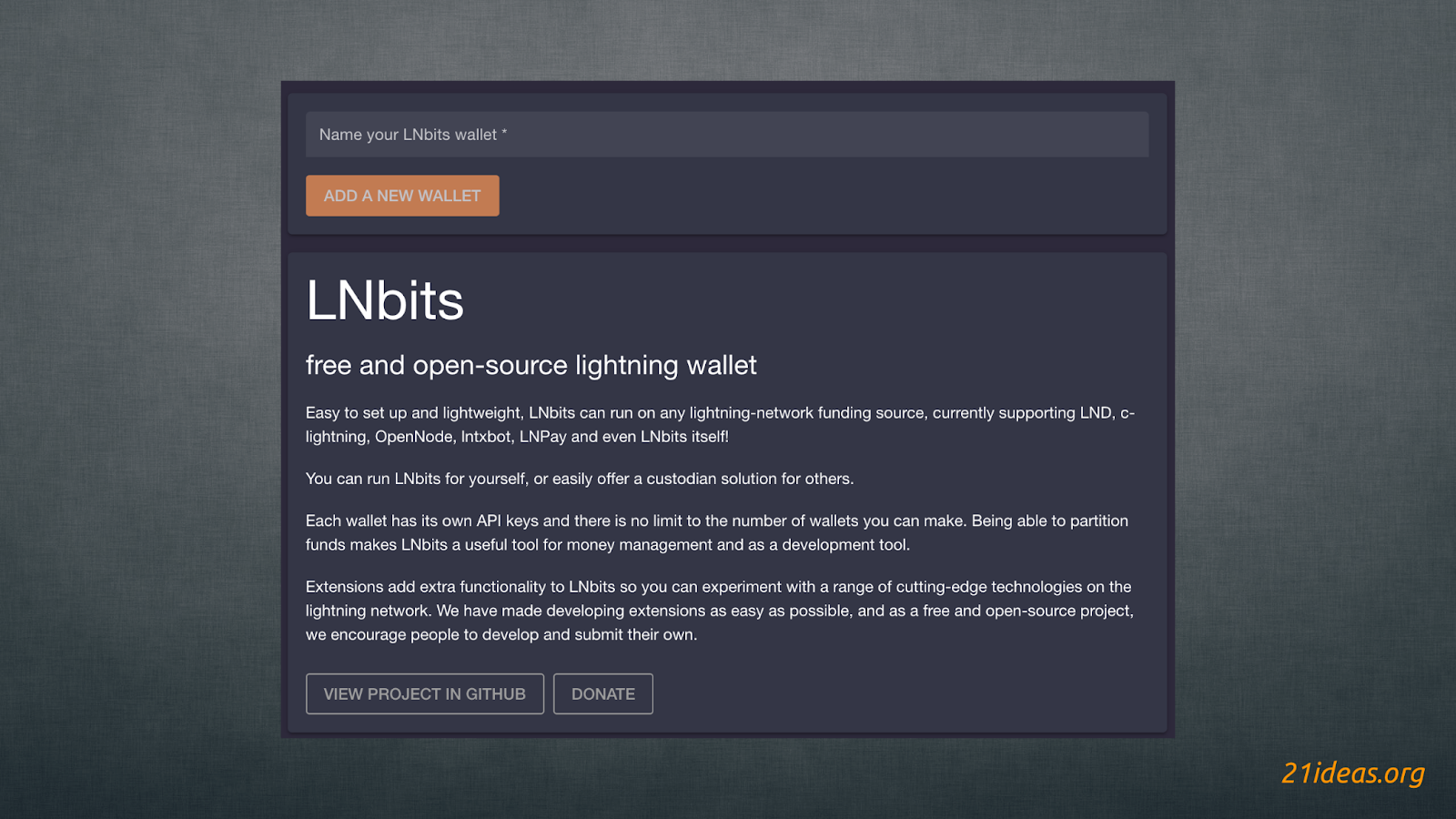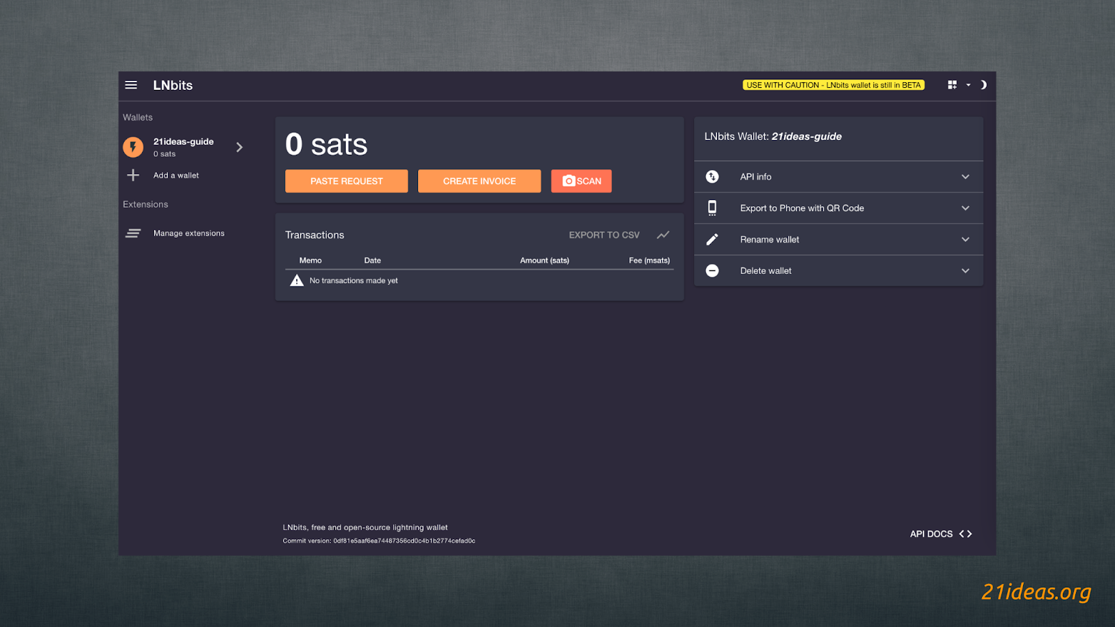 Полезным материалом к изучению, прежде чем погрузиться в функции LNbits является мой гид по кошельку Blue Wallet, доступный в текстовом и видео форматах здесь.