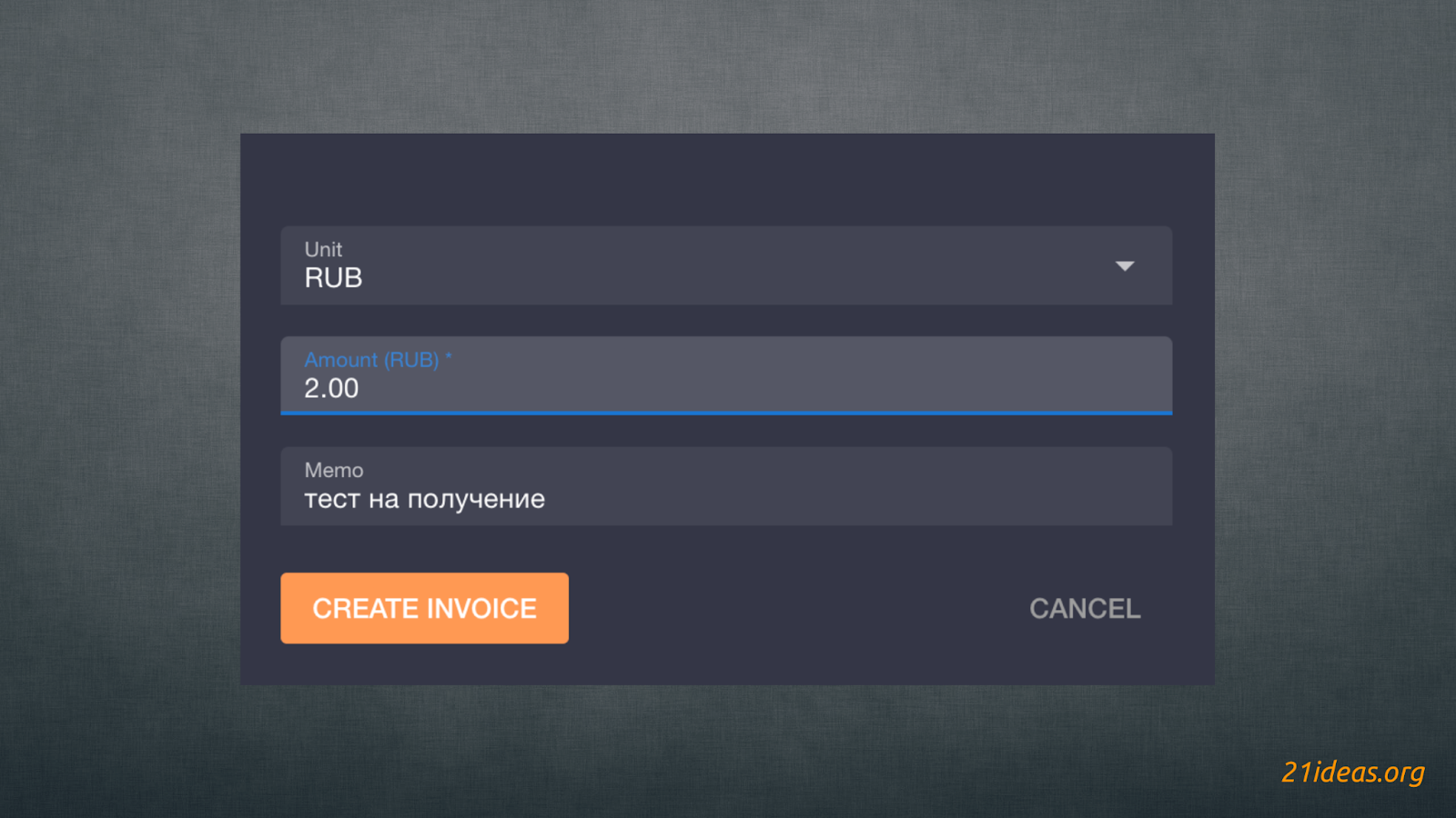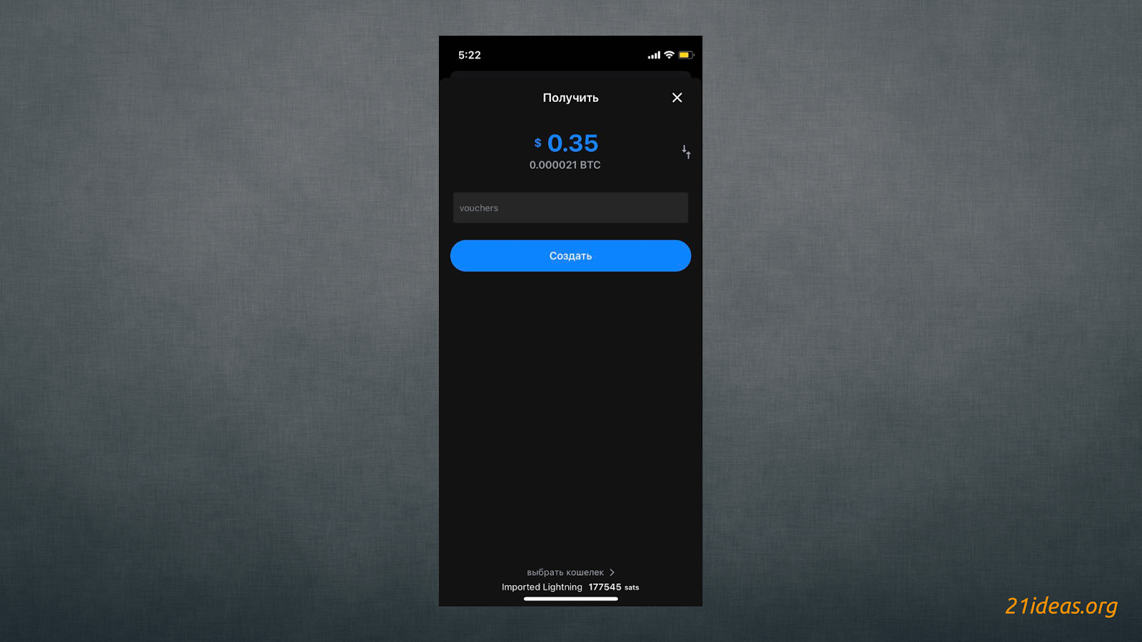 Итак, чтобы пополнить кошелек мы можем вставить уже имеющийся LNURL на получение средств, создать инвойс либо отсканировать QR-код для их получения. При создании инвойса валютой по умолчанию будут саты, но вы можете выбрать любую фиатную валюту, например российский рубль.