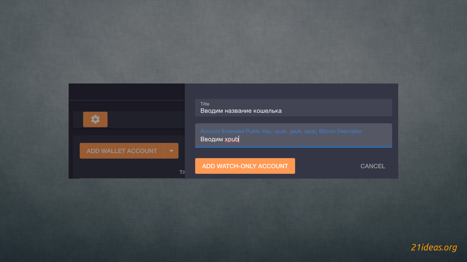 - Выбираем название и вставляем xpub в соответствующее поле.