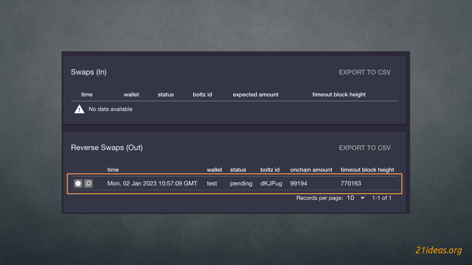 - Подтверждаем своп, нажав кнопку CREATE REVERSE SWAP (OUT).