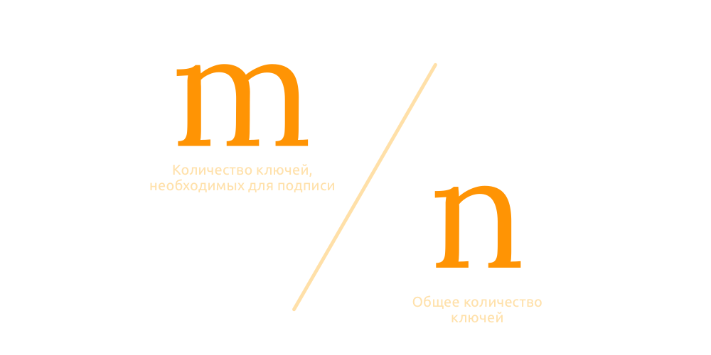 Такая структура популярно описывается как кворум m-из-n. M определяет количество приватных ключей, необходимых для подписи, а N - общее количество приватных ключей, которые могут быть использованы для подписания транзакций.