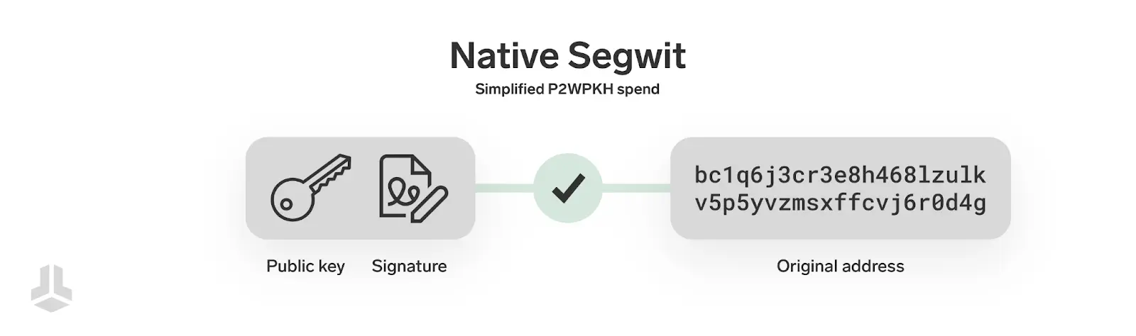 Когда вы получаете биткоины, отправитель создает новый выход (output), который блокирует биткоины с помощью скрипта — это технически точный способ сказать, что “он отправляет средства на ваш Биткоин-адрес”. Биткоин-скрипт — это небольшой и простой программный код, который определяет, можно ли потратить ту или иную транзакцию; именно это и проверяют все участники сети при верификации транзакций. Например, стандартный скрипт Native Segwit (P2WPKH) проверяет, соответствуют ли предоставленные публичный ключ и цифровая подпись хешу публичного ключа, уже записанному в блокчейне Биткоина. Проще говоря: скрипт убеждается в том, что у вас есть правильные ключи от Биткоин-адреса.