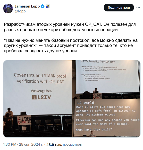 Это не упрёк в адрес таких сложных уровней, как BitcoinOS / BitVM / Botanix’s Spiderchain / Citrea’s zero knowledge rollup - они делают всё возможное, работая с доступным им набором инструментов. Хотя мы не хотим, чтобы Биткоин был протоколом “всё в одном”, добавление низкоуровневых функций в базовый слой может иметь смысл, если они значительно снижают сложность создания функций на более высоких уровнях.