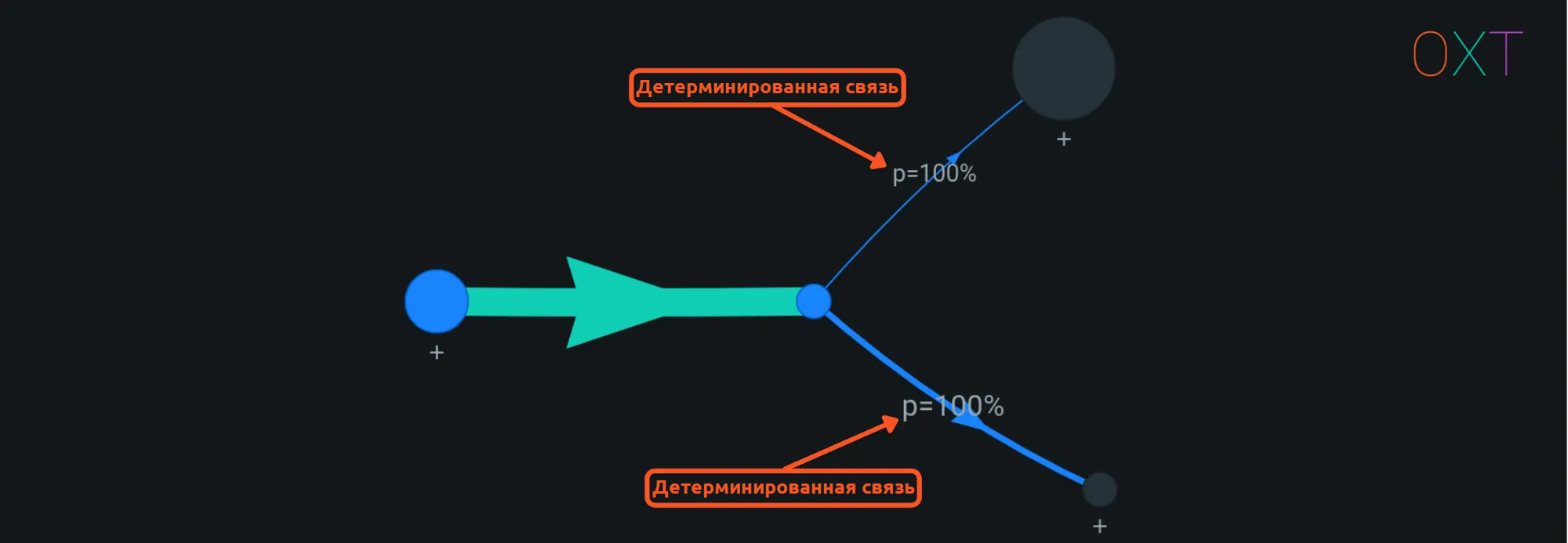Нарушение детерминированных связей и создание неоднозначности графа требует особой структуры транзакций. Детерминизм зависит от количества входов и выходов транзакции, а также от количества BTC в каждом UTXO.