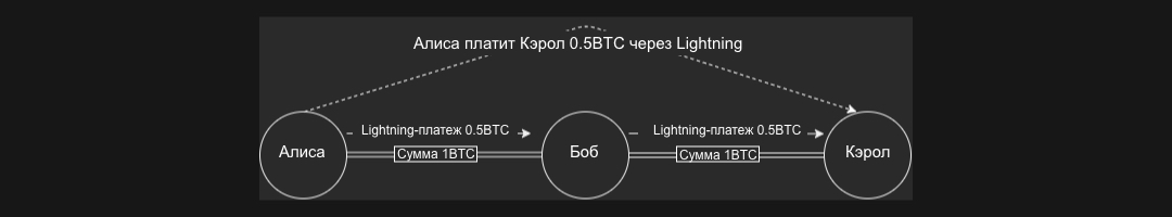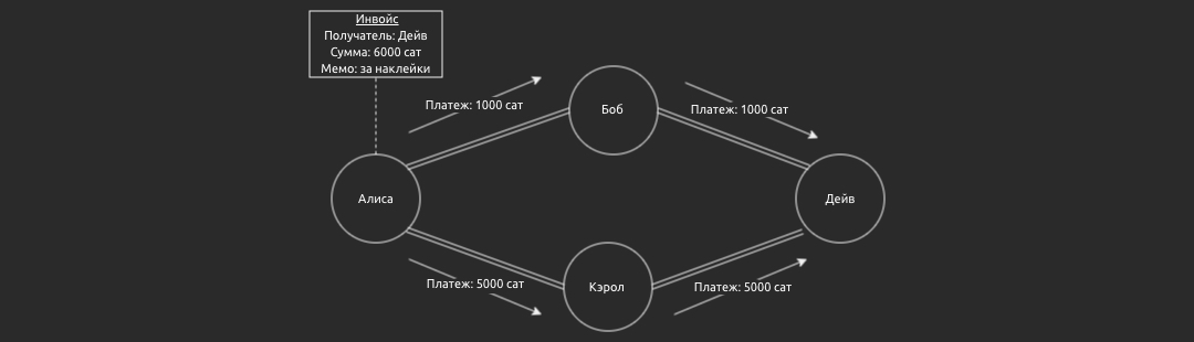 Алиса отправляет платеж Кэрол через Боба. Боб знает, что Алиса отправила платеж Кэрол и на какую сумму.