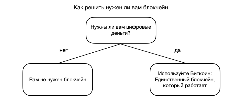Без денег нет безопасности, а без безопасности стоимость валюты и целостность цепочки рушатся. Именно по этой причине блокчейн полезен только в качестве денег, и деньги волшебным образом на деревьях не растут. Да, это так просто. Блокчейн хорош только в одном — в устранении необходимости в доверенной третьей стороне, и он работает только с деньгами. Блокчейн не может обеспечивать осуществление чего-либо, находящегося вне сети. Хотя блокчейн, видимо, может отслеживать факт владения за пределами сети, он может обеспечивать владение только той валютой, которая является родной для его сети. Биткоин отслеживает владение и обеспечивает право собственности. Если блокчейн не может выполнять обе функции, любые записи, которые он хранит, будут по своей сути небезопасными и в конечном итоге могут быть изменены. В этом смысле неизменяемость не является неотъемлемой чертой блокчейна, а, напротив, является производным свойством. И если блокчейн не является неизменяемым, его валюта никогда не будет надежной формой денег, потому что перевод и окончательный расчет никогда не будут надежными. Без надежного окончательного расчета денежная система не функционирует должным образом и не будет привлекать ликвидность.