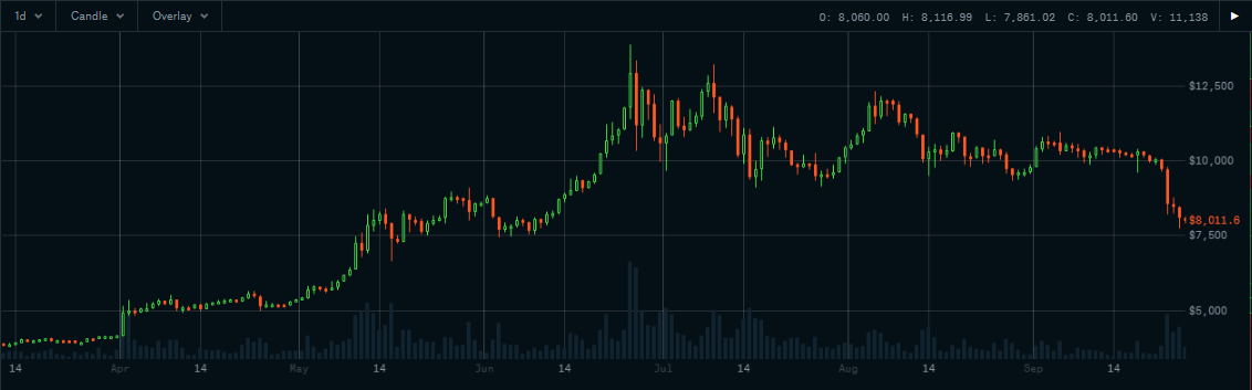Coinbase Pro: курс биткоина к доллару США за последние шесть месяцев (по состоянию на 27 сентября 2019 года).