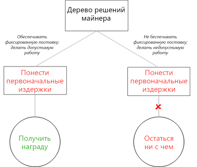 Напомню, что в каждом действительном блоке создается заранее определенное количество биткоинов (то есть до того момента, пока не будет достигнут лимит в 21 миллион). Биткоин, выпущенный в каждом блоке в сочетании с комиссией за транзакции в сети, представляет собой вознаграждение майнерам за выполнение функции Proof of Work. Майнерам платят в биткоинах за обеспечение безопасности сети. В качестве части процесса создания и предложения блока, майнеры включают в вышеупомянутый блок заранее определенное количество биткоинов. Эти монеты будут выпущены в качестве компенсации за расходование материальных ресурсов для обеспечения безопасности сети. Если бы майнер включил в качестве компенсации количество биткоинов, несоответствующих заранее определенному графику поставок, остальные участники сети отклонили бы этот блок, как недействительный. Одной из функций безопасности является обязательство майнеров проверять и обеспечивать фиксированную поставку валюты с целью получения компенсации. Майнеры рискуют собственной шкурой в виде предварительных капитальных затрат (и затрат на электроэнергию), при этом недопустимая работа не вознаграждается.