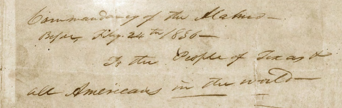 — подполковник Уильям Б. Тревис (24 февраля 1836 г.). Ссылка на полное письмо Тревиса