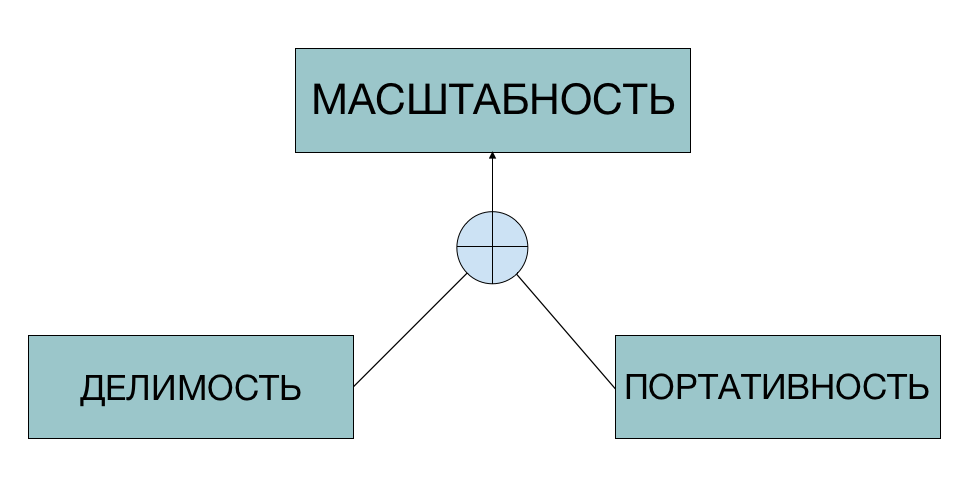 Составной атрибут иногда называют “реализуемостью в масштабе”, который, так же, как и “способность к реализации в будущем”, на самом деле довольно важен. Поскольку мне нравятся более короткие термины, я буду использовать вместо этого (почти вымышленный) термин “масштабность” (я полагаю, что этот случай выбора терминологии заслуживает уточнения, как и упоминалось во вступлении). Откровенно говоря, это свойство скорее относится к графе “Что?”, нежели — к графе “Когда?”.