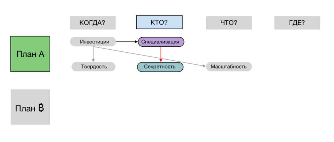 При обсуждении данной темы в контексте Биткоина используется множество терминов. Так, конфиденциальность, анонимность и отрицаемость фокусируются скорее на людях, чем на активах. При этом, непрослеживаемость и взаимозаменяемость, наоборот, сосредоточены на неразличимости единиц активов. В свою очередь, они строго связаны с отрицаемостью, поскольку обычный способ, применяемый участниками сети для слежки, заключается в использовании недостаточной взаимозаменяемости единиц. А на этом мы подробно остановимся в шестой части.