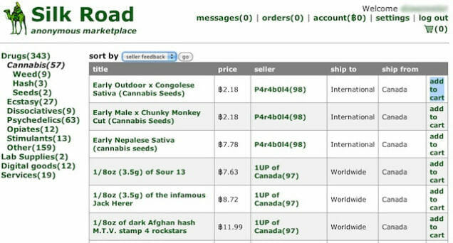 Интерфейс Silk Road в 2011 году (источник: Gawker)