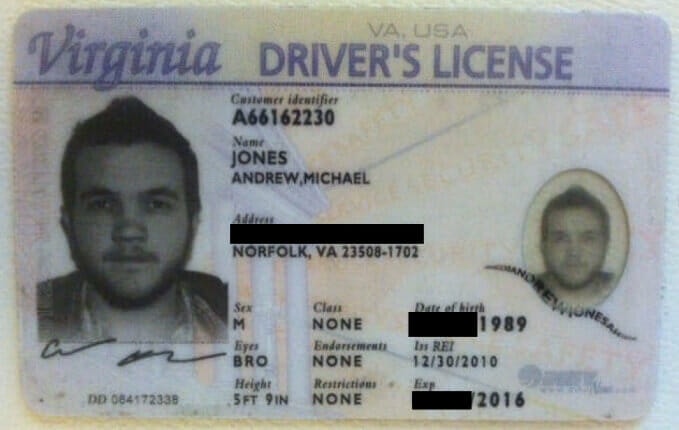 Водительское удостоверение на имя Эндрю Майкла Джонса, псевдоним Inigo.