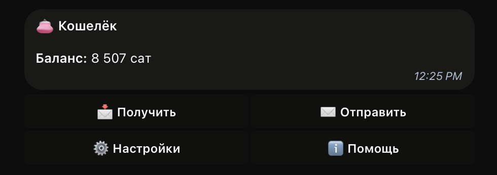 Проще всего отправить или получить саты можно из главного меню бота: ㆔ → Главное меню.